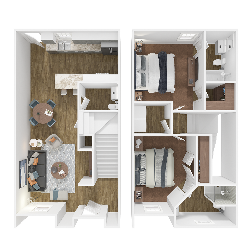 2 Beds, 2.5 Baths, 1250 sq ftAvailable NowModel Gallery