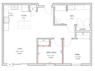 One Bedroom - Accessible & Type A - Floorplan 2 One Bedroom w/Bonus Room