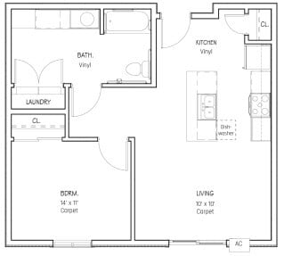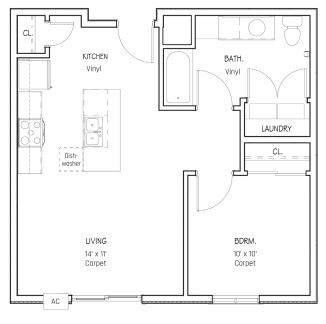 One Bedroom - Type B - Floorplan 1 One Bedroom - Accessible & Type A