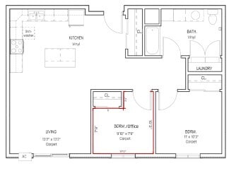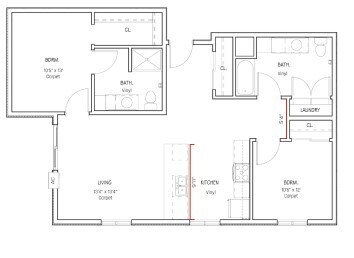 Apartment Model: Two Bedrooms - B1$1,5502 Bedroom, 1 Bath, 875 sq ftUnavailable![]()