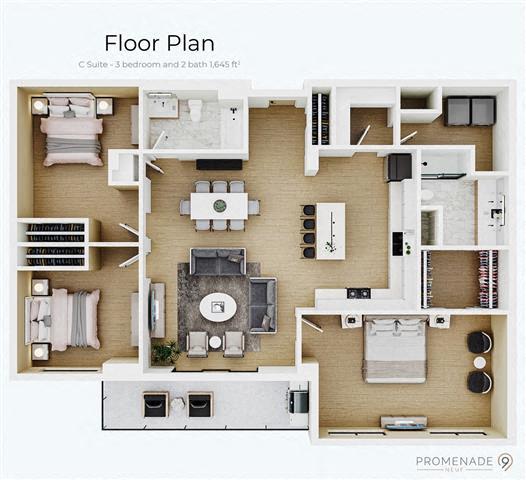 Apartment Model: Suite Style C3 Bedroom, 2 Bath, 1645 sq ftUnavailable![]()