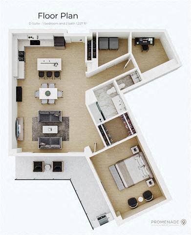 1 Bed, 2 Baths, 1227 sq ftLargest 1 BedroomThis is the largest 1 Bedroom at this PropertyModel Gallery