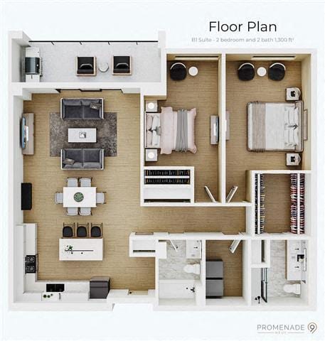 Apartment Model: Suite Style B12 Bedroom, 2 Bath, 1326 sq ftUnavailableSuite Style B1 - Floorplan 1 Suite Style B2