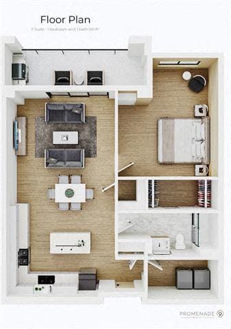 Apartment Model: Suite Style F1 Bedroom, 1 Bath, 951 sq ftUnavailableSuite Style F - Floorplan 1 Suite Style D