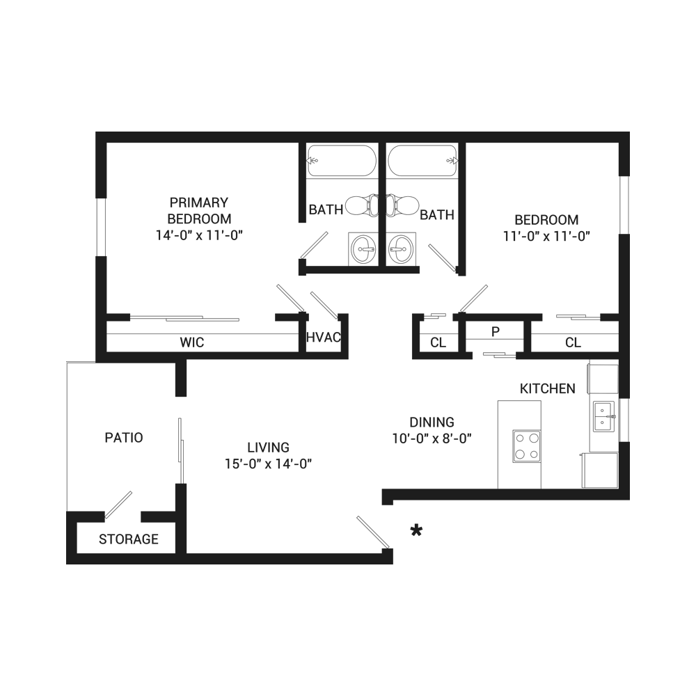 2 Beds, 1 Bath, 900 sq ftAvailable NowModel Gallery