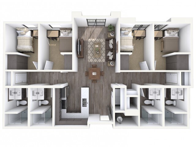 Apartment Model: 4x4From $6054 Bedroom, 4 Bath, 1275 sq ftAvailable Now![]()