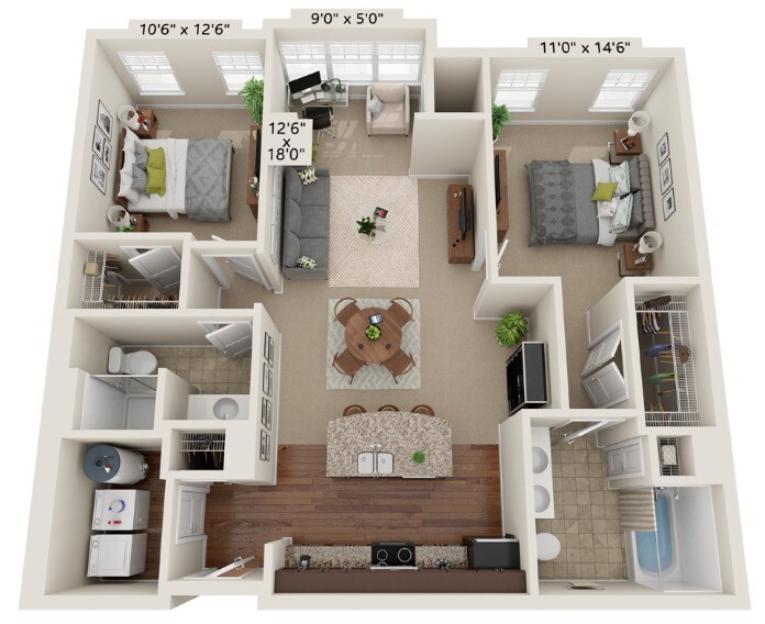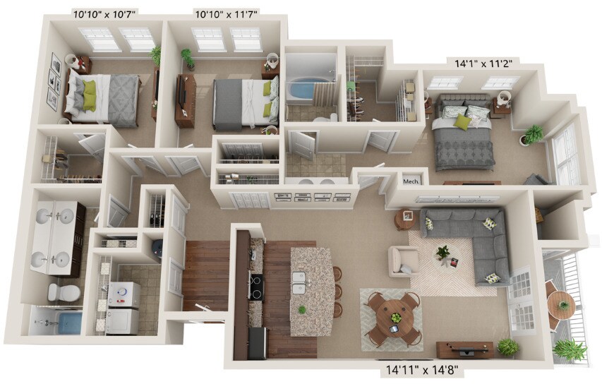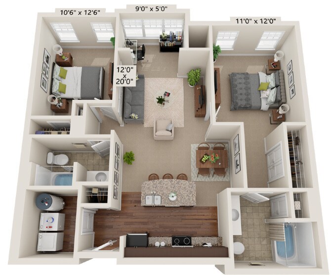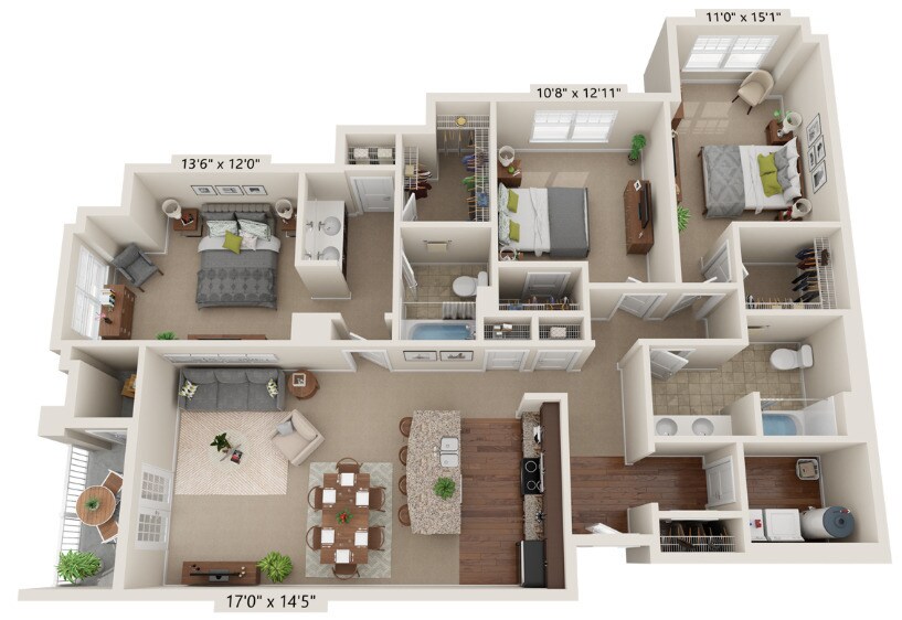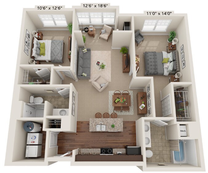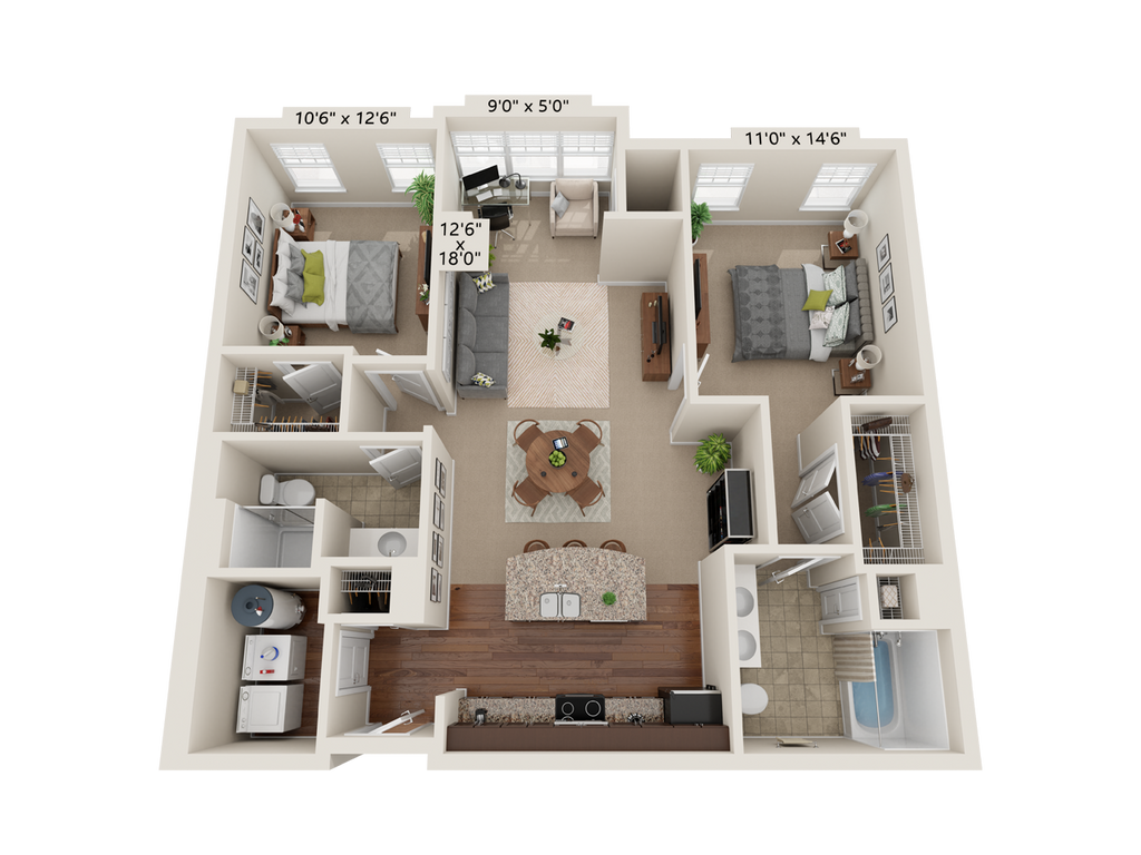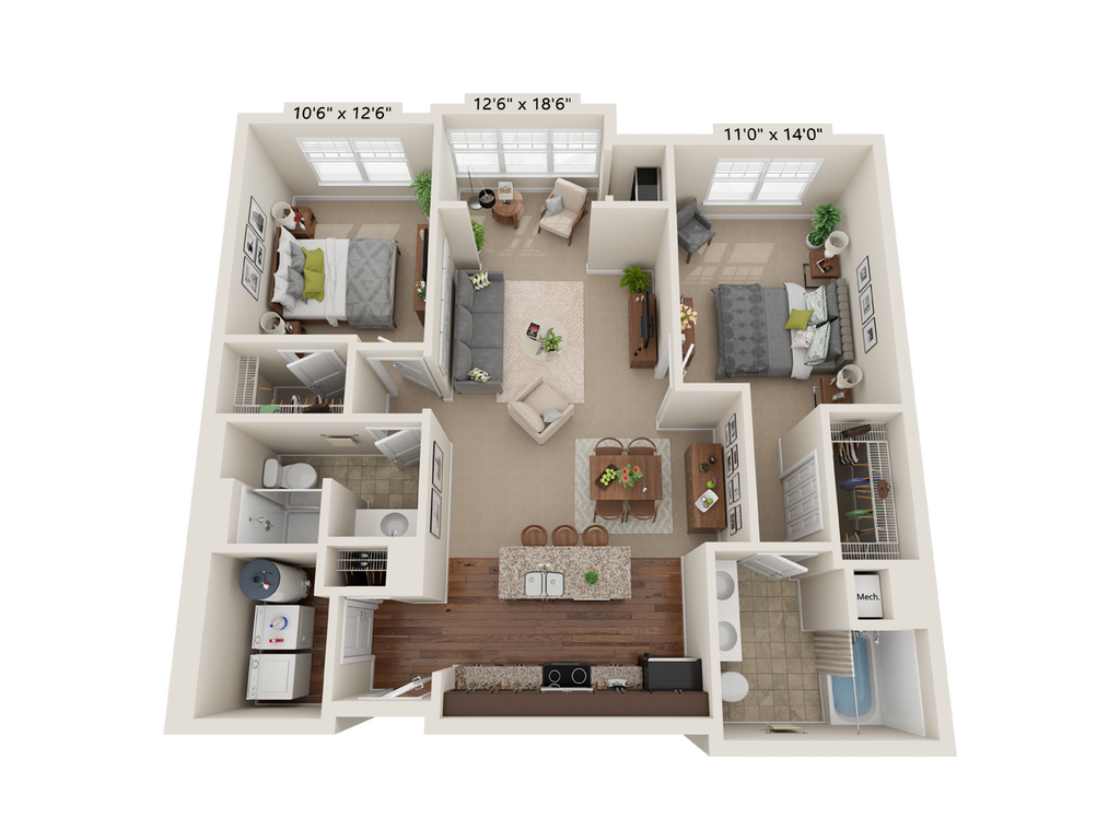 Apartment Model: FernFrom $1,7431 Bedroom, 1 Bath, 777 sq ftAvailable Now![]()