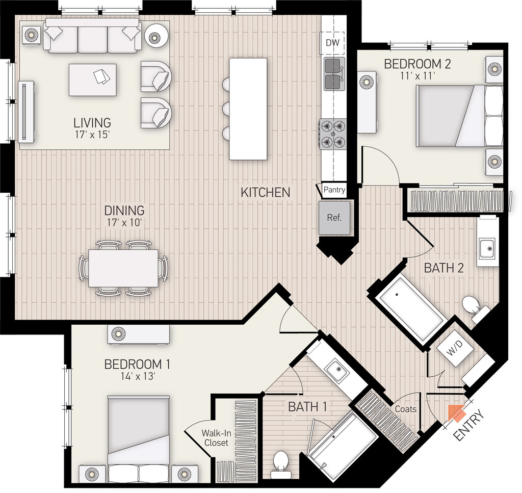 1 Bed, 1 Bath, 746 sq ftAvailable NowCheapest 1 BedroomThis is the cheapest 1 Bedroom at this PropertyModel Gallery