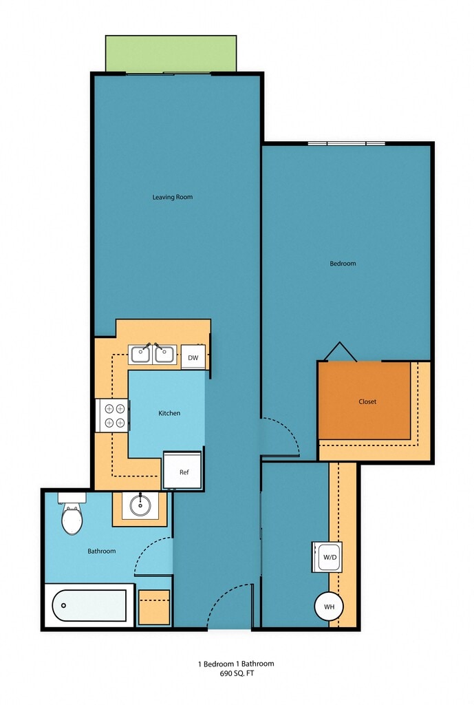 One Bedroom One Bathroom - Floorplan 1 ![]()