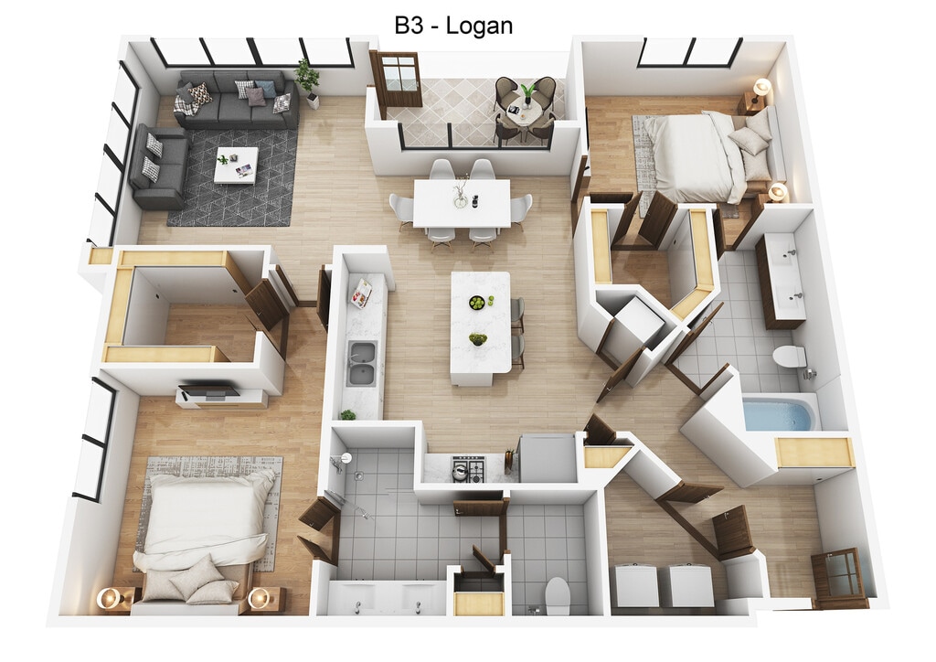 1 Bed, 1 Bath, 676 sq ftModel Gallery