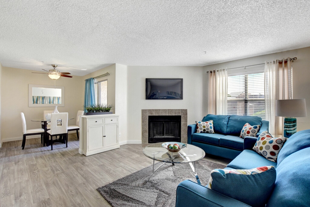 Welcome to Promontory Point Apartments in Henderson! Our beautiful and spacious one, two and three-bedroom floor plans feature beautifully renovated kitchens with stainless steel appliances, fireplaces, cathedral ceilings, huge walk-in closets, and washers and dryers. Within our grassy courtyards are two sparkling pools (one heated) with Wi-Fi, spa and playground. Find your home at Promontory Point Apartments, the best apartment living in Green Valley!