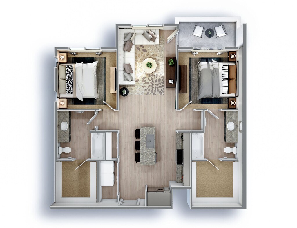 2 Beds, 2 Baths, 1095 sq ftAvailable NowModel Gallery