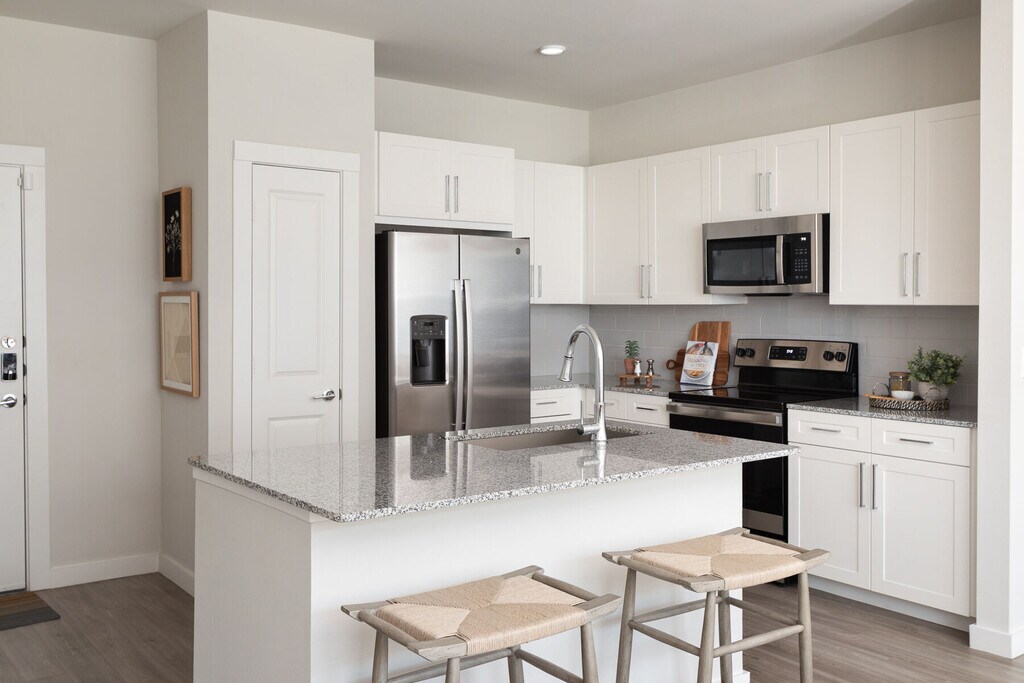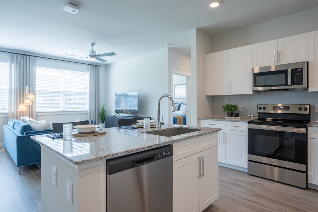 Richmond’s best luxury apartment community, Prose District West. If you're on the hunt for apartments in Richmond, Texas, look no further. Our luxurious community offers spacious one- and two-bedroom apartment floor plans designed with your comfort and style in mind.Step into your new home and be greeted by modern stainless-steel appliances, sleek granite countertops, and ample closet storage. Enjoy the convenience of a dining-sized kitchen island, perfect for entertaining and preparing your favorite meals. Our hardwood-style flooring adds a touch of sophistication, while full-sized washers and dryers in every apartment home make laundry day a breeze.