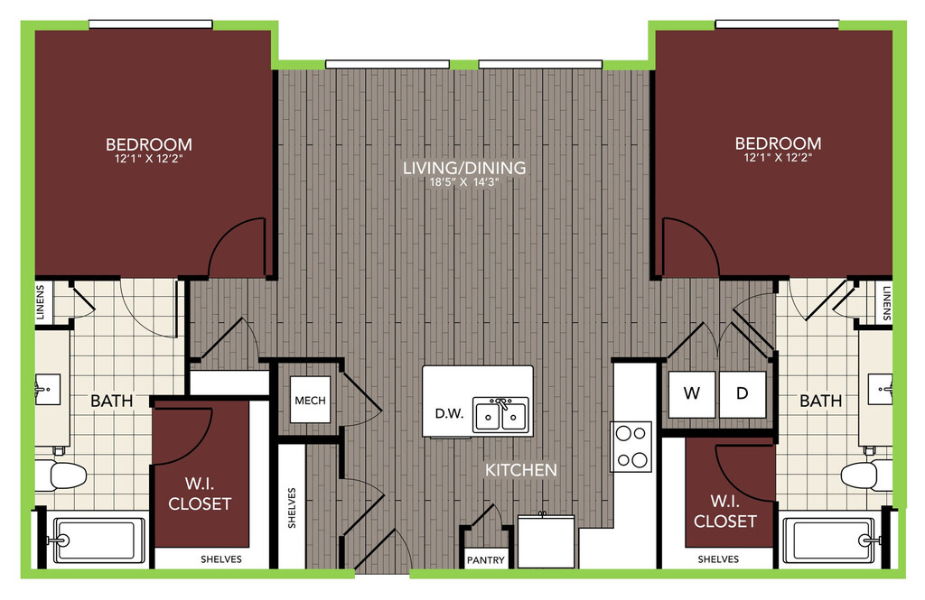 Apartment Model: B1Call For Rates2 Bedroom, 2 Bath, 1174 sq ftUnavailableFloor plans are artist's rendering. All dimensions are approximate. Actual product and specifications may vary in dimension or detail. Not all features are available in every rental home. Prices and availability are subject to change. Base rent is based on monthly frequency. Additional fees may apply, such as but not limited to package delivery, trash, water, amenities, etc. Deposits vary. Please see a representative for details.