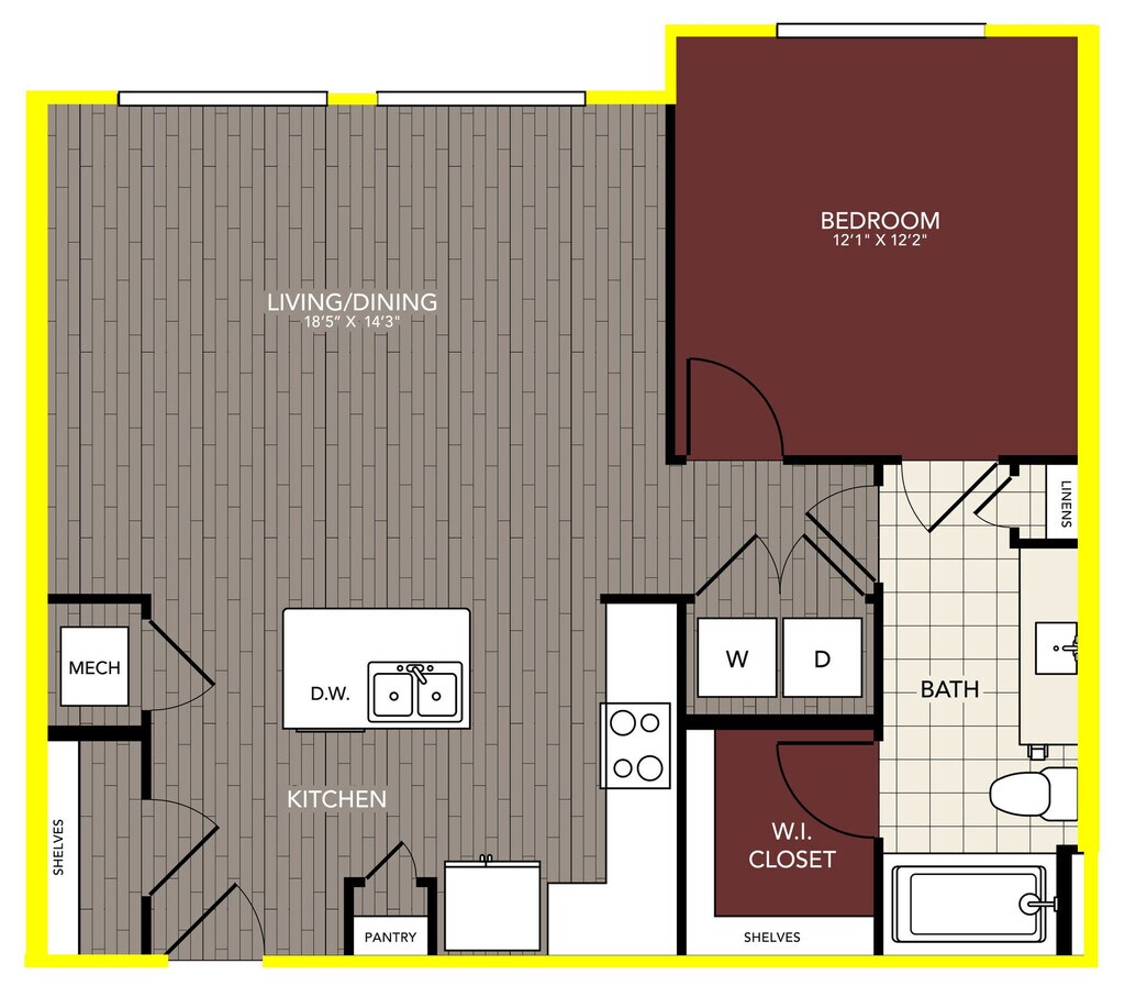B1 - Floorplan 1 Floor plans are artist's rendering. All dimensions are approximate. Actual product and specifications may vary in dimension or detail. Not all features are available in every rental home. Prices and availability are subject to change. Base rent is based on monthly frequency. Additional fees may apply, such as but not limited to package delivery, trash, water, amenities, etc. Deposits vary. Please see a representative for details.
