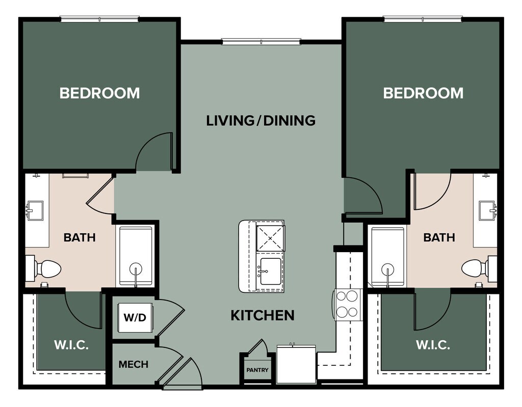 Apartment Model: B2From $1,4992 Bedroom, 2 Bath, 1174 sq ftAvailable NowFloor plans are artist's rendering. All dimensions are approximate. Actual product and specifications may vary in dimension or detail. Not all features are available in every rental home. Prices and availability are subject to change. Base rent is based on monthly frequency. Additional fees may apply, such as but not limited to package delivery, trash, water, amenities, etc. Deposits vary. Please see a representative for details.