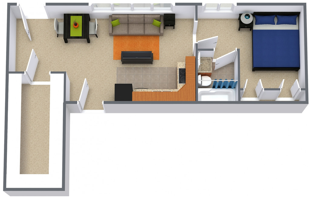 1 Bed, 1 Bath, 518 sq ftModel Gallery