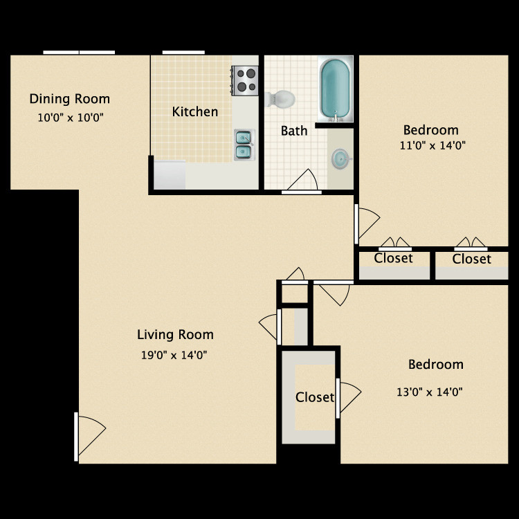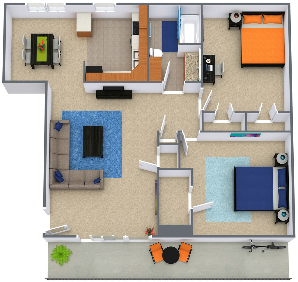 Apartment Model: 2 Bed2 Bedroom, 1 Bath, 1000 sq ftUnavailable![]()