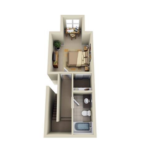 Mid 1BR 1BA Loft - Floorplan 2 Mid 1BR 1BA Den/Loft