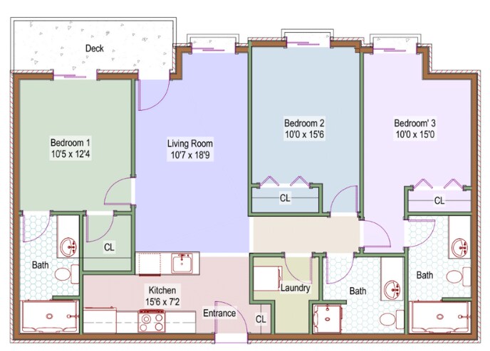 303 W Prospect Rd 2 Bed, 2 Bath - Floorplan 1 3 Bedrooms