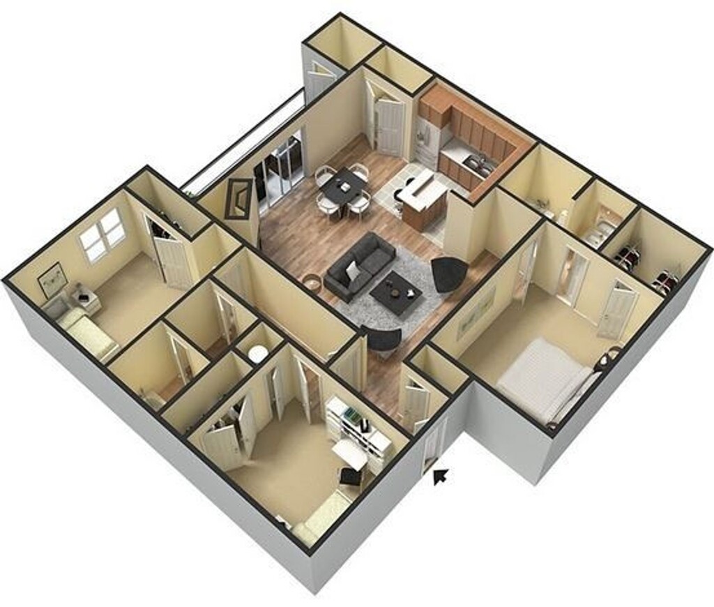 B2P - Floorplan 11 Apartment Unit: 014FApartment Model: B2P$1,3242 Bedroom, 2 Bath, 1096 sq ftAvailable December 22, 20253 Bedrooms