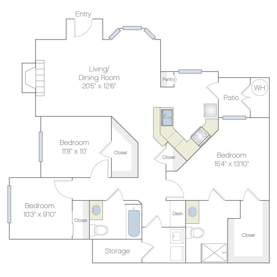 Apartment Model: WinterParkFrom $1,6051 Bedroom, 1 Bath, 842 sq ftAvailable NowFloor plans are artist's rendering. All dimensions are approximate. Actual product and specifications may vary in dimension or detail. Not all features are available in every rental home. Prices and availability are subject to change. Base rent is based on monthly frequency. Additional fees may apply, such as but not limited to package delivery, trash, water, amenities, etc. Deposits vary. Please see a representative for details.