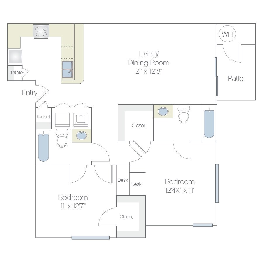 Powderhorn - Floorplan 2 Floor plans are artist's rendering. All dimensions are approximate. Actual product and specifications may vary in dimension or detail. Not all features are available in every rental home. Prices and availability are subject to change. Base rent is based on monthly frequency. Additional fees may apply, such as but not limited to package delivery, trash, water, amenities, etc. Deposits vary. Please see a representative for details.