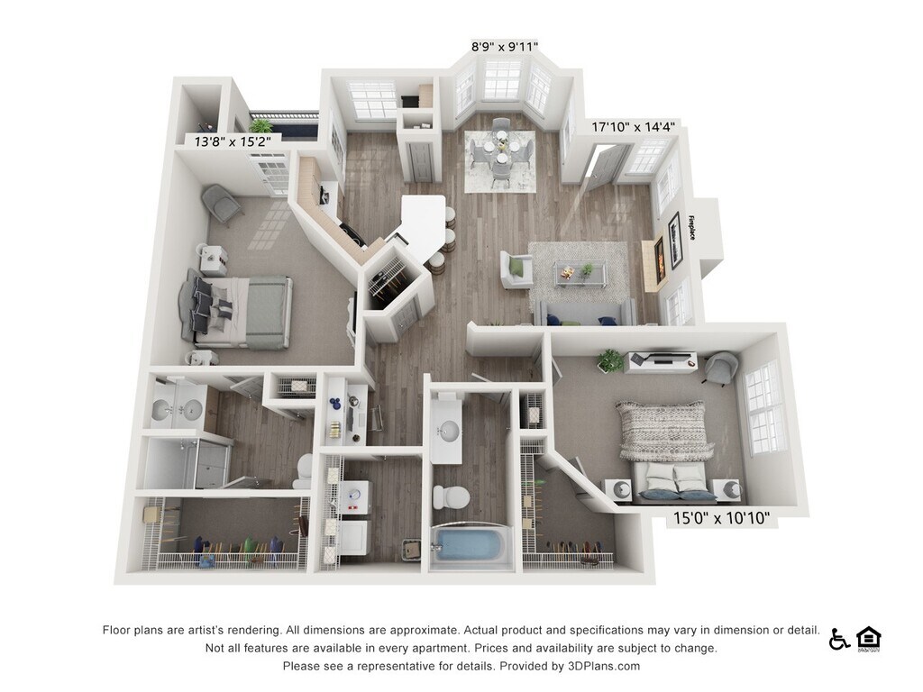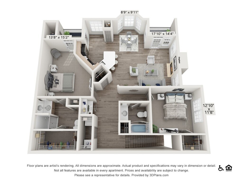 WinterPark - Floorplan 2 Floor plans are artist's rendering. All dimensions are approximate. Actual product and specifications may vary in dimension or detail. Not all features are available in every rental home. Prices and availability are subject to change. Base rent is based on monthly frequency. Additional fees may apply, such as but not limited to package delivery, trash, water, amenities, etc. Deposits vary. Please see a representative for details.