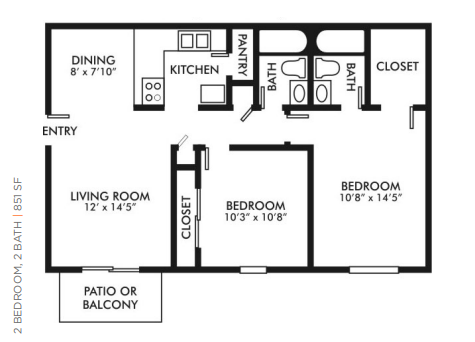 2 Beds, 2 Baths, 851 sq ftModel Gallery