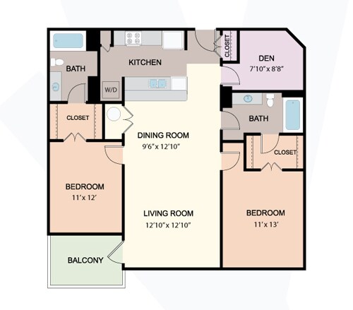 D - Floorplan 3 Apartment Unit: 0303Apartment Model: D$2,5452 Bedroom, 2 Bath, 917 sq ftAvailable NowFloorplan E