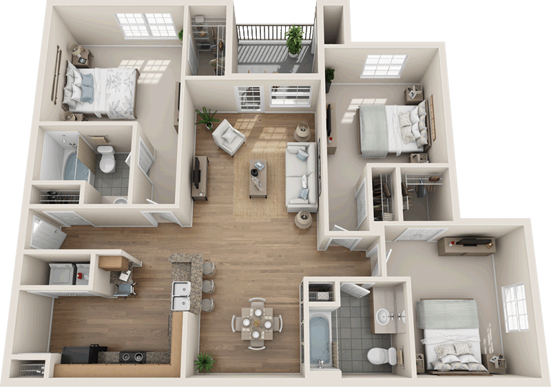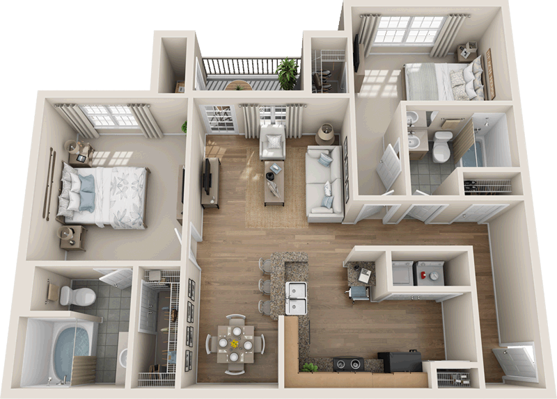 3 Beds, 2 Baths, 1120 sq ftAvailable NowModel Gallery