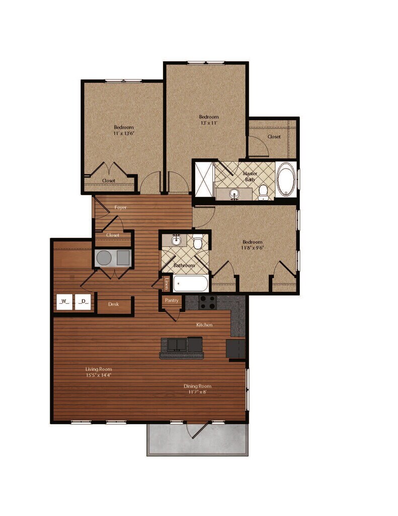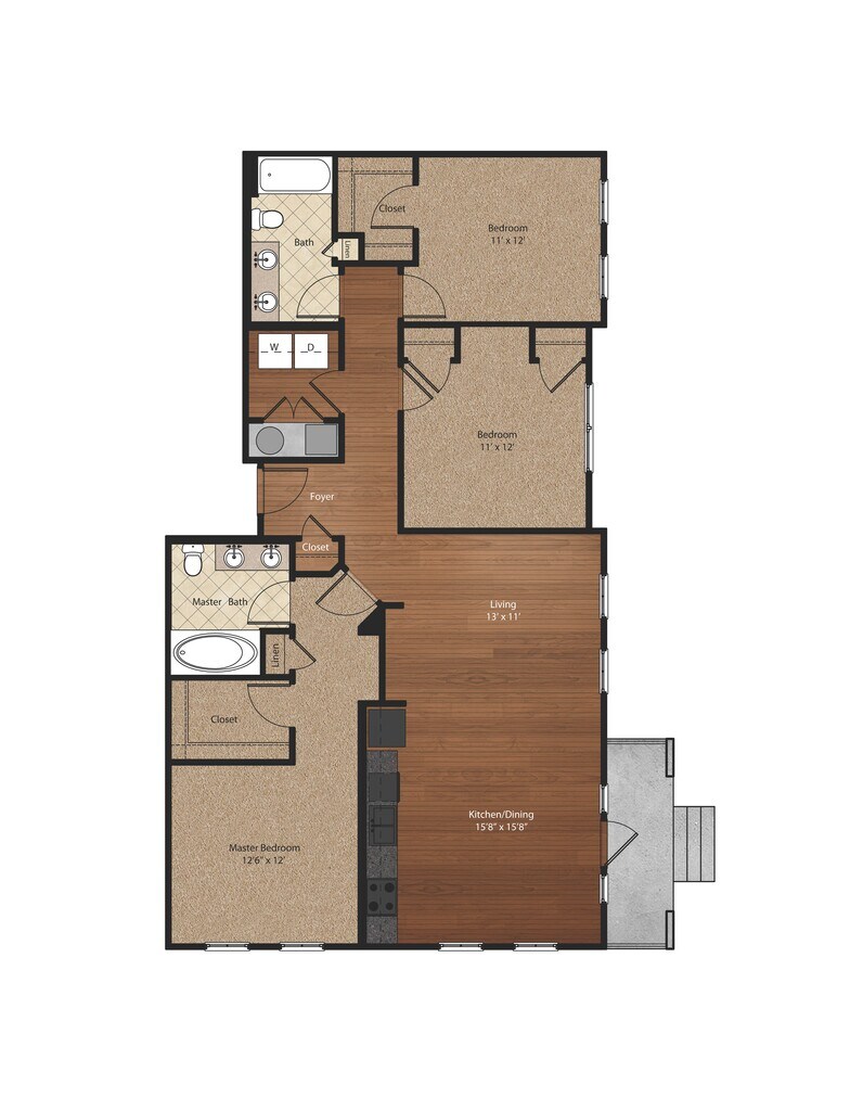 Apartment Model: The Creekwood A1From $1,1591 Bedroom, 1 Bath, 768 sq ftAvailable Now![]()