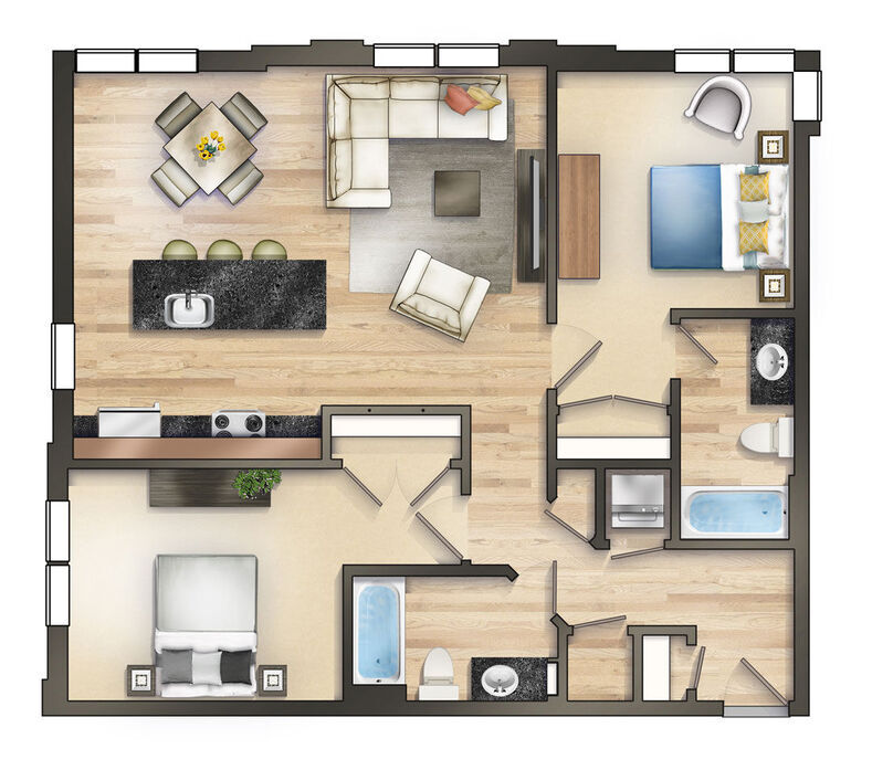 2 Beds, 2 Baths, 900 sq ftModel Gallery