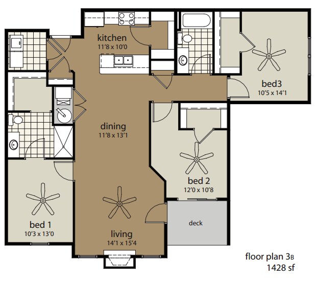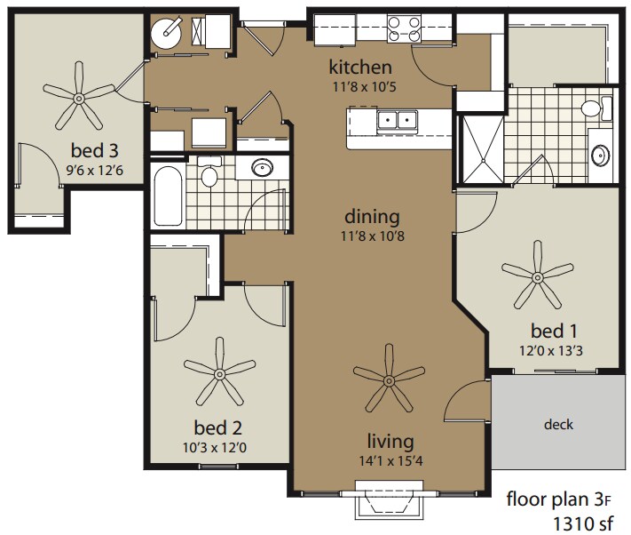 1AD 894 sf - Floorplan 1 Apartment Unit: 6310-204Apartment Model: 1AD 894 sfFrom $1,1371 Bedroom, 1 Bath, 894 sq ftAvailable Now1E 724 sf