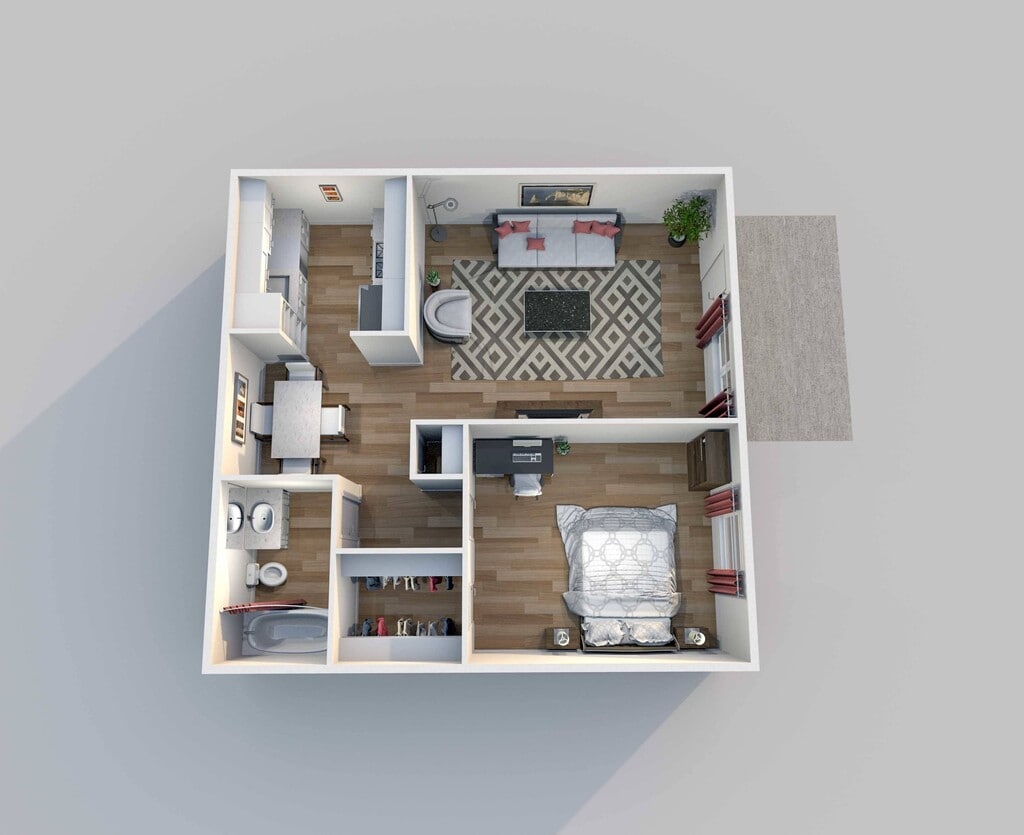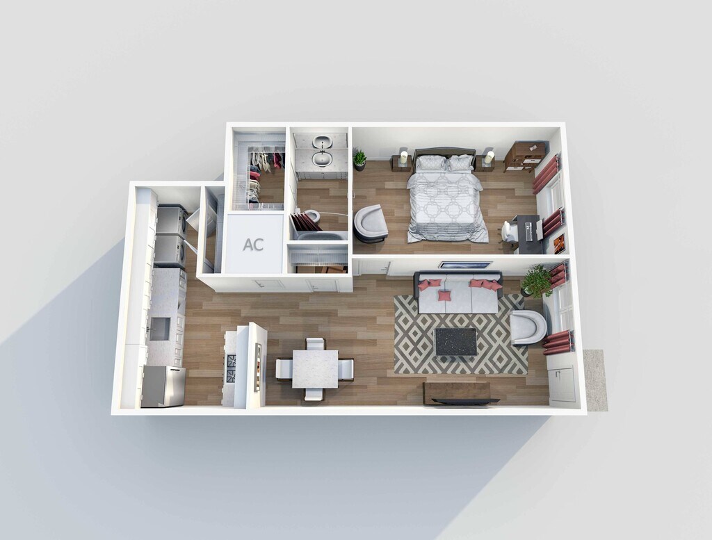 1 Bed, 1 Bath, 600 sq ftModel Gallery