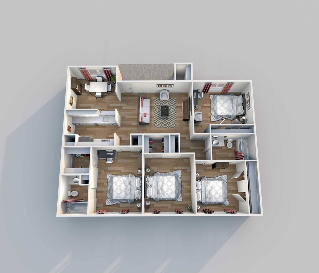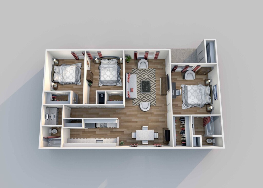 Apartment Model: B3R2From $1,2992 Bedroom, 2 Bath, 1100 sq ftAvailable Now![]()