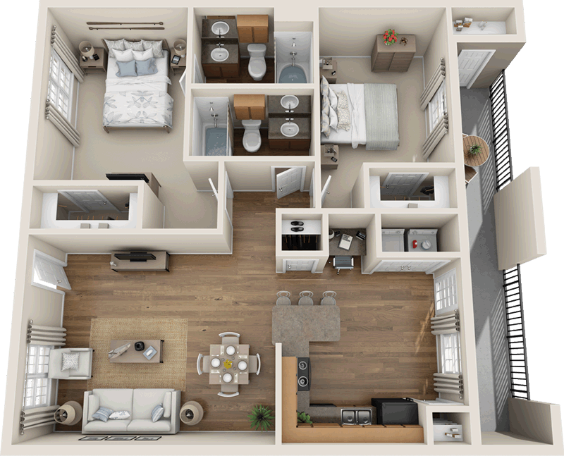 2 Beds, 2 Baths, 950 sq ftAvailable NowModel Gallery