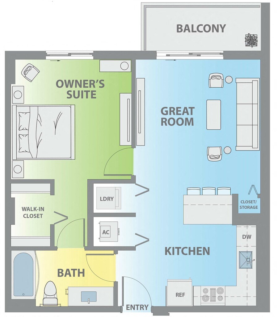 1 Bed, 1 Bath, 505 sq ftModel Gallery