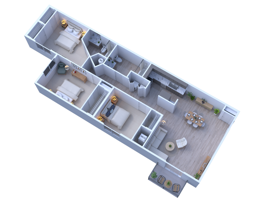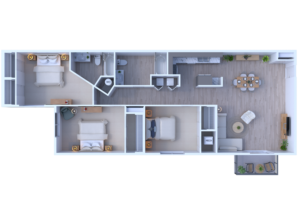 Dalton - Floorplan 3 Apartment Unit: 127-2Apartment Model: Dalton$2,2643 Bedroom, 2 Bath, 1206 sq ftAvailable Now