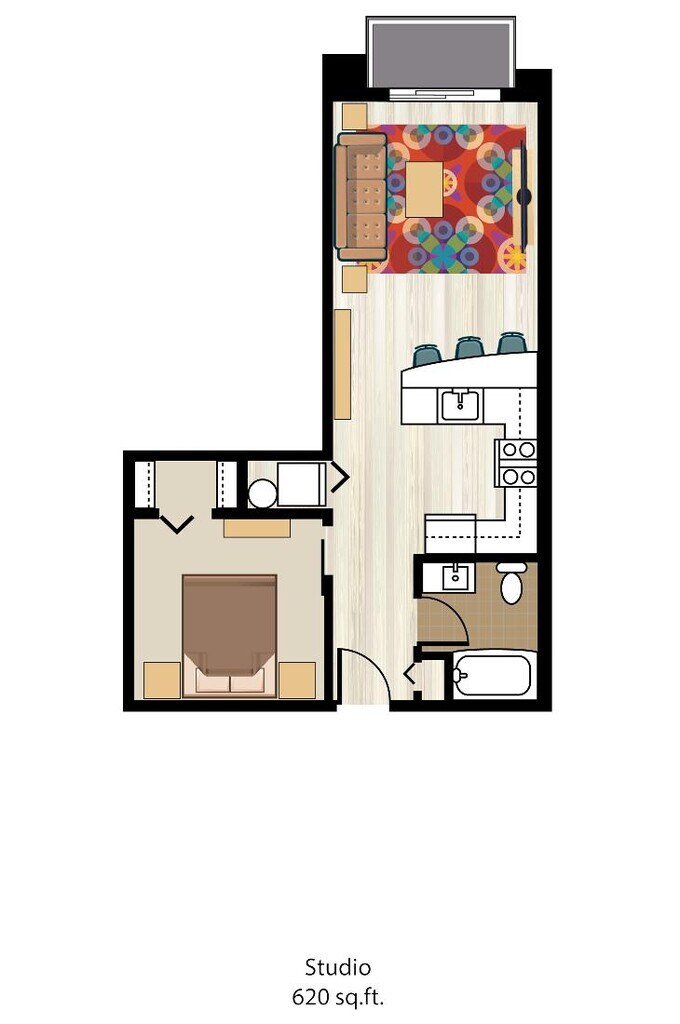 Apartment Model: StudioStudio, 1 Bath, 620 sq ftUnavailable![]()