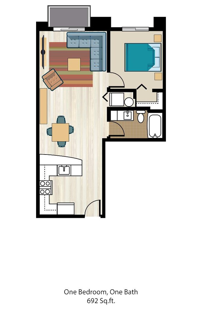 1 Bed, 1 Bath, 693 sq ftModel Gallery