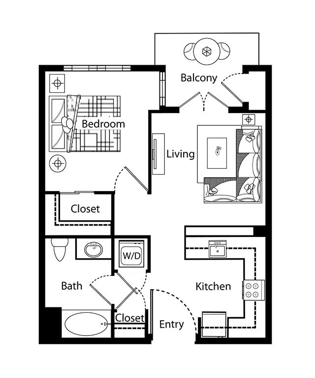 1 Bed, 1 Bath, 665 sq ftAvailable NowModel Gallery