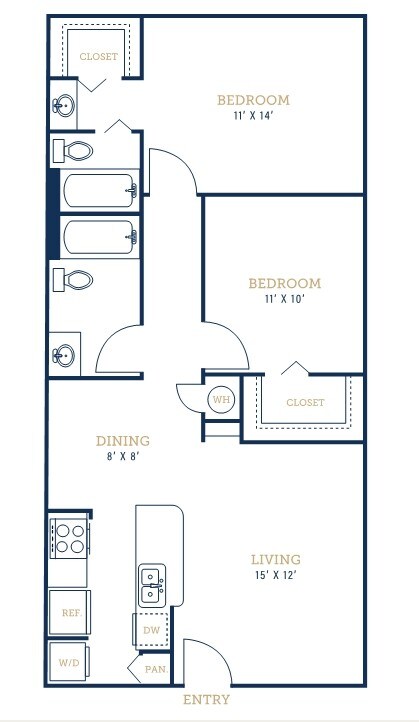 Apartment Model: 2 Bed 2 Bath$1,1002 Bedroom, 2 Bath, 922 sq ftUnavailableFloorplansPhotos![]()