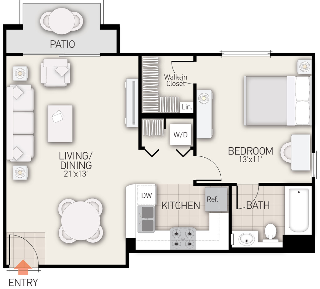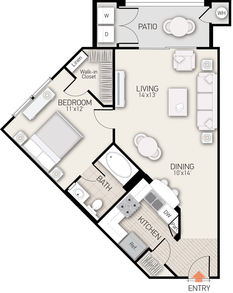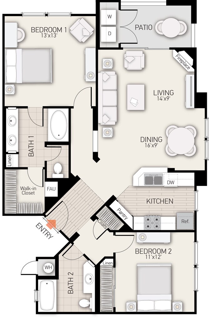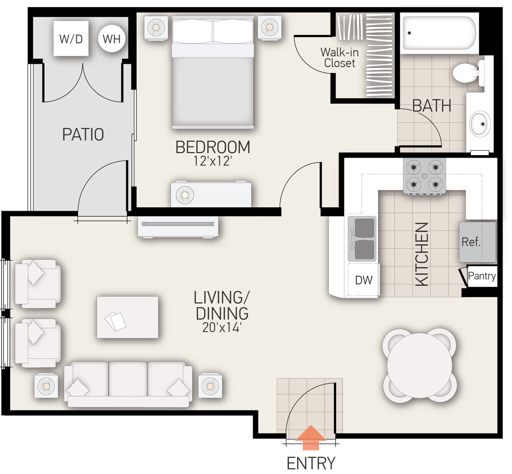 1 Bed, 1 Bath, 755 sq ftAvailable NowModel Gallery