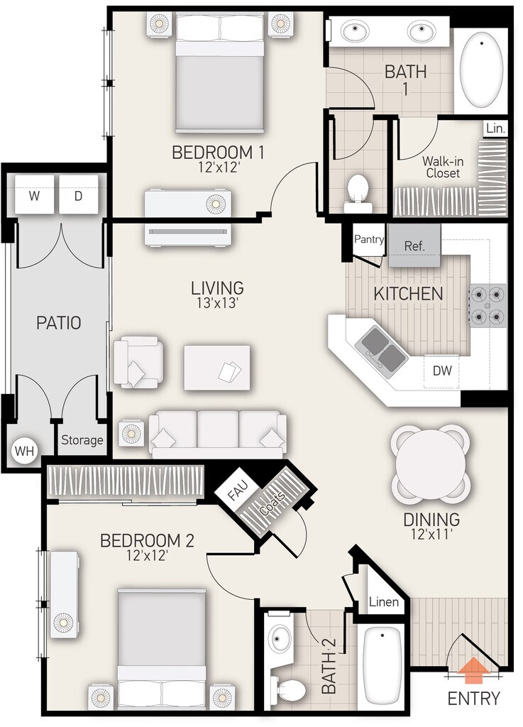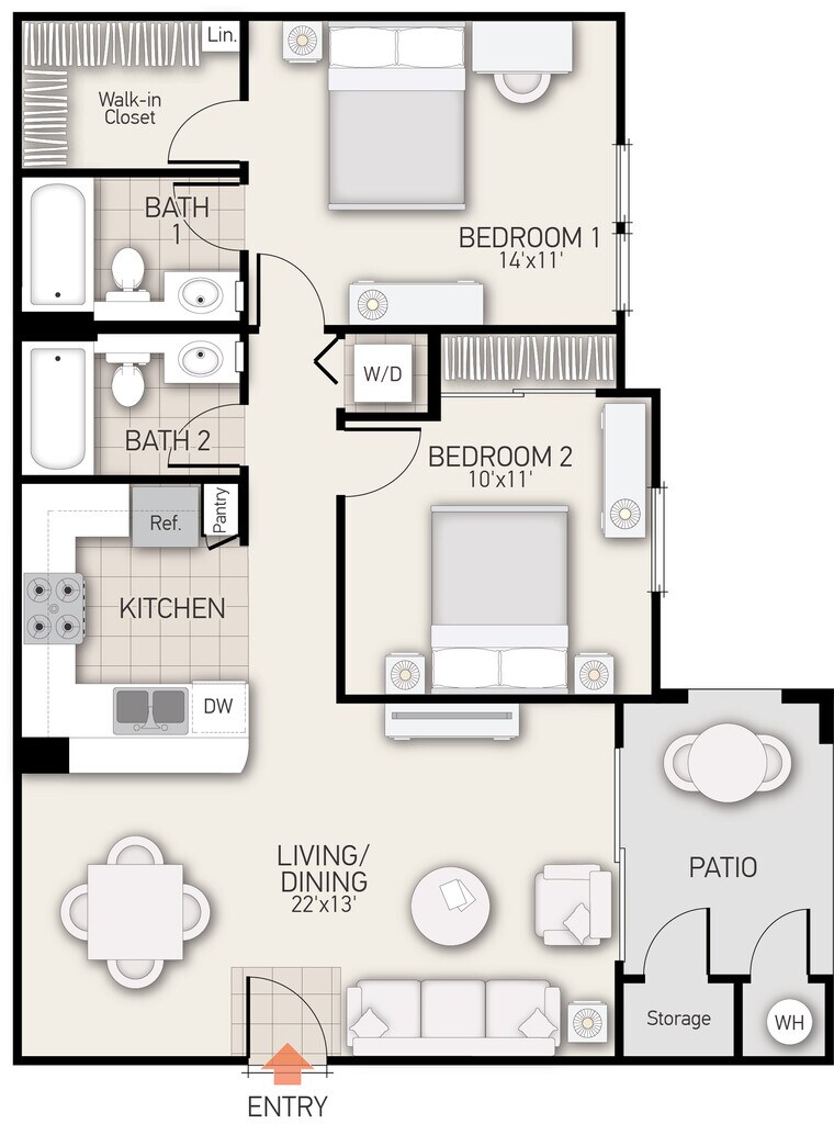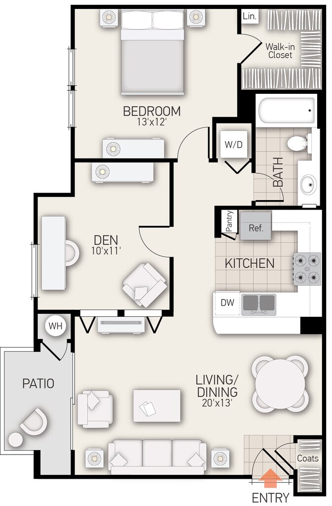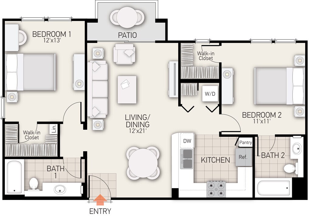 1 Bed, 1 Bath, 755 sq ftAvailable NowModel Gallery