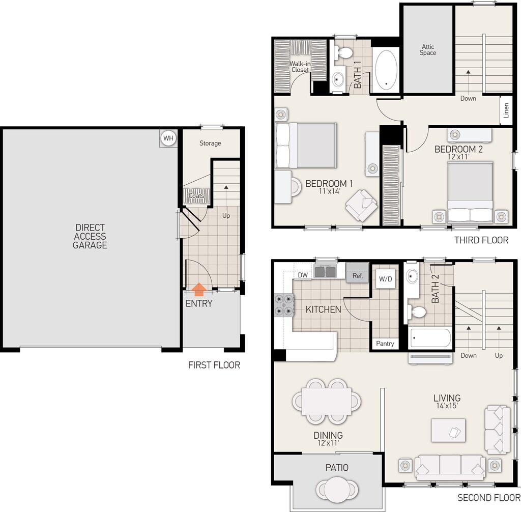 1 Bed, 1 Bath, 723 sq ftAvailable NowModel Gallery