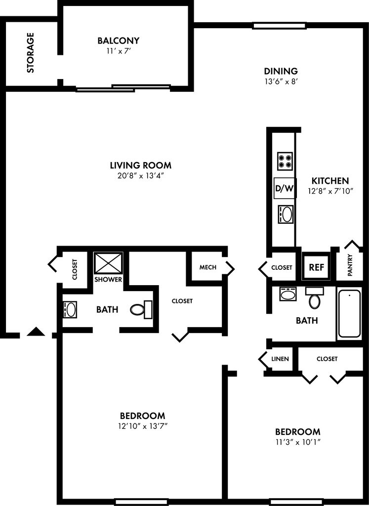 Two Bedroom - 985 sqft - Floorplan 1 ![]()