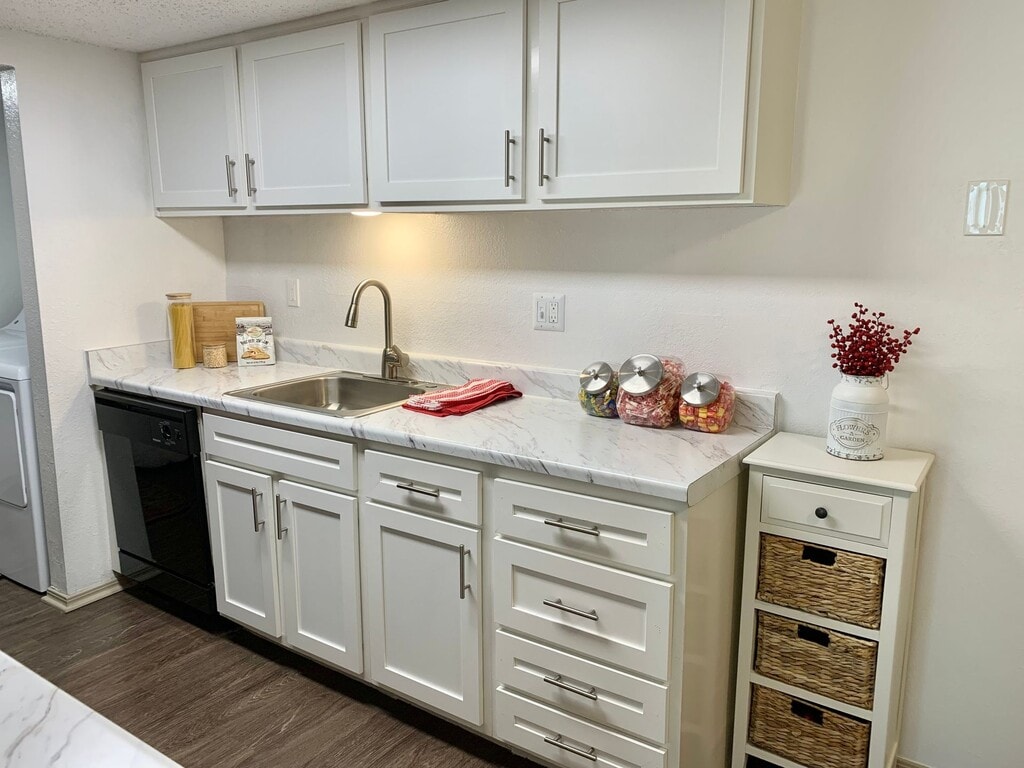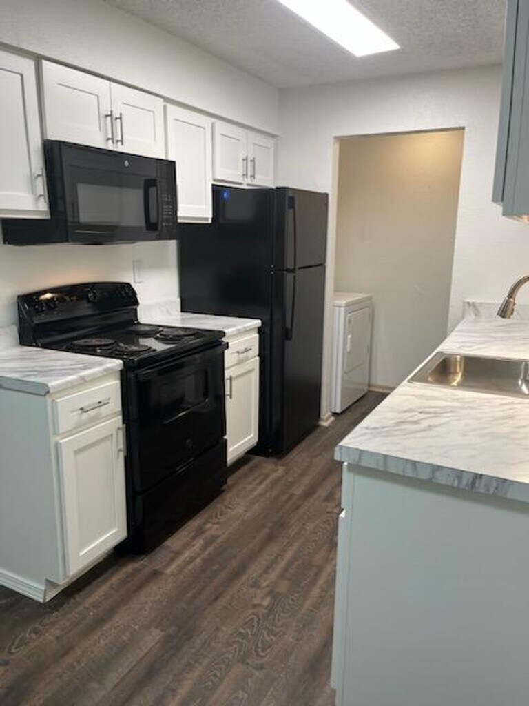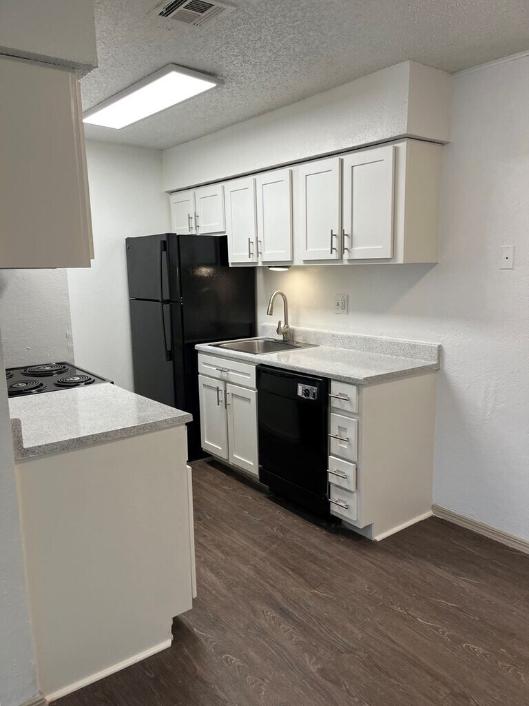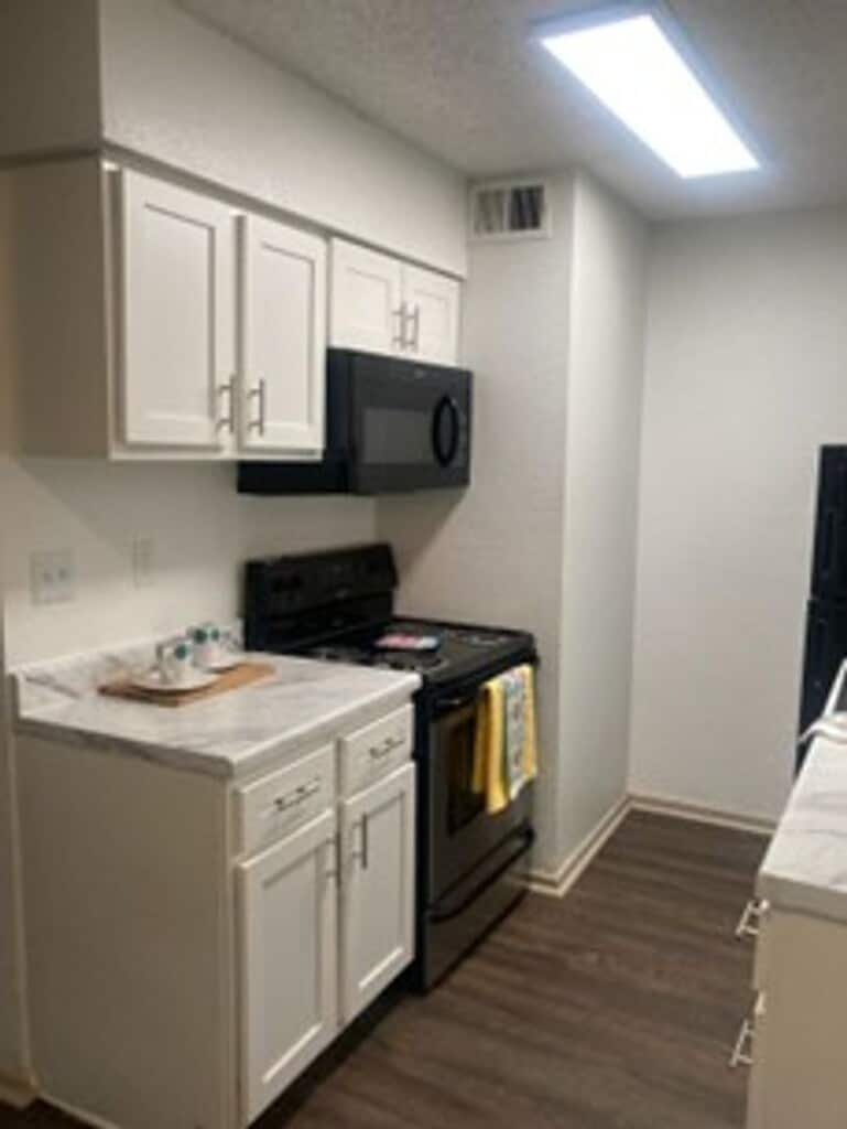 Newly renovated one bedroom, one bathroom apartment home featuring LED light fixtures, brushed nickel hardware, modern cabinet and countertop updates, even plank wood flooring! Enjoy beautiful finishes and affordable rent in Broken Arrow!