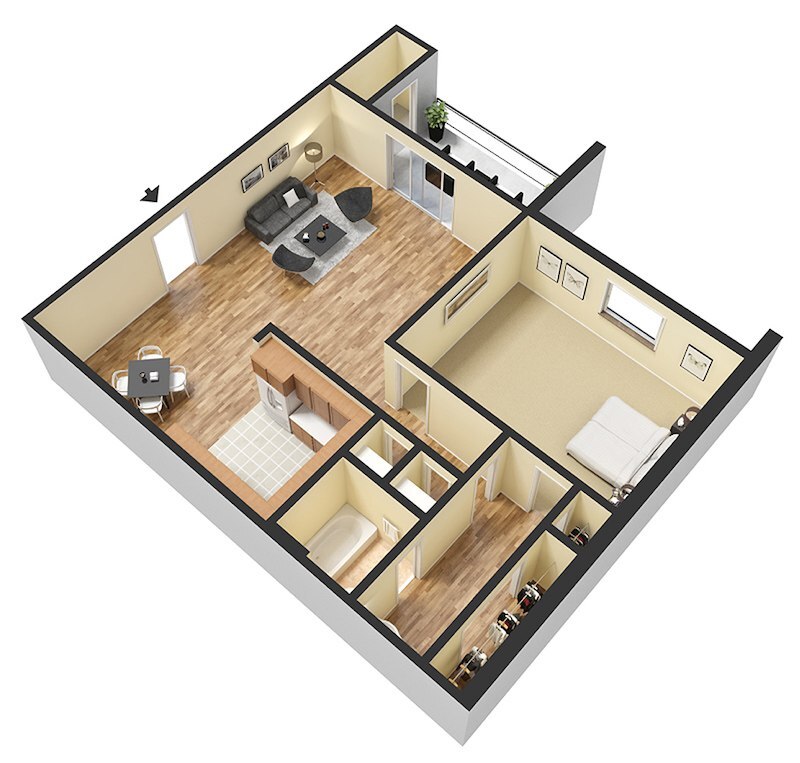 1 Bed, 1 Bath, 858 sq ftModel Gallery