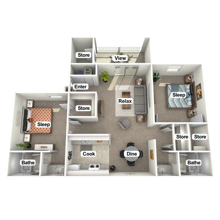 2 Beds, 2 Baths, 1000 sq ftModel Gallery